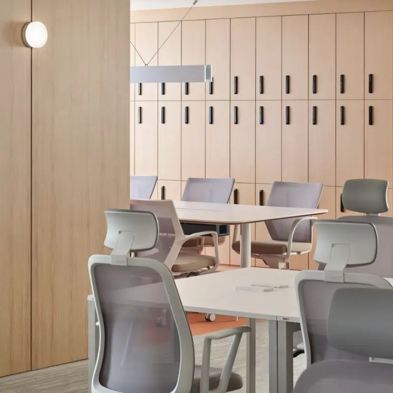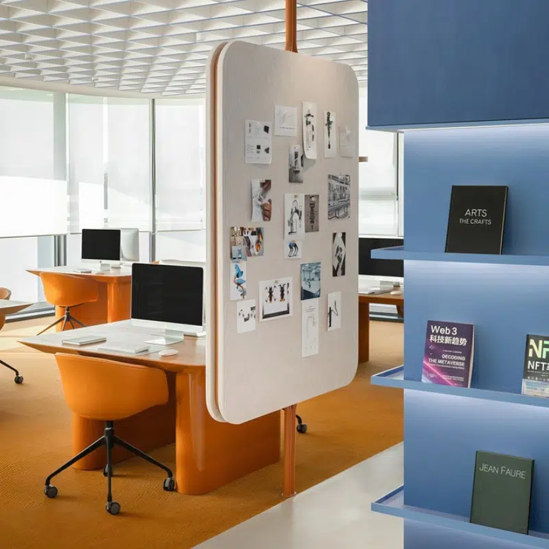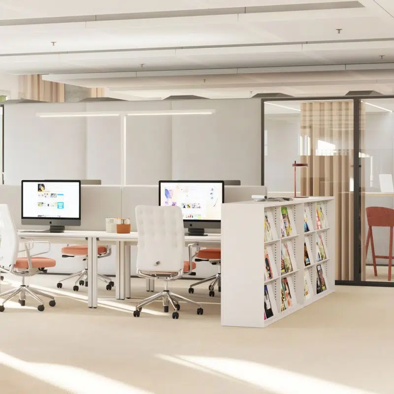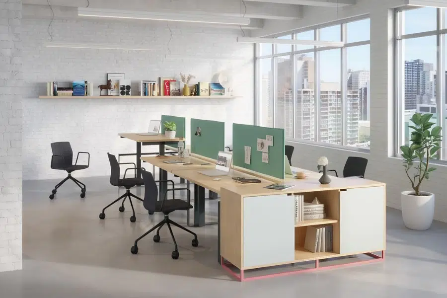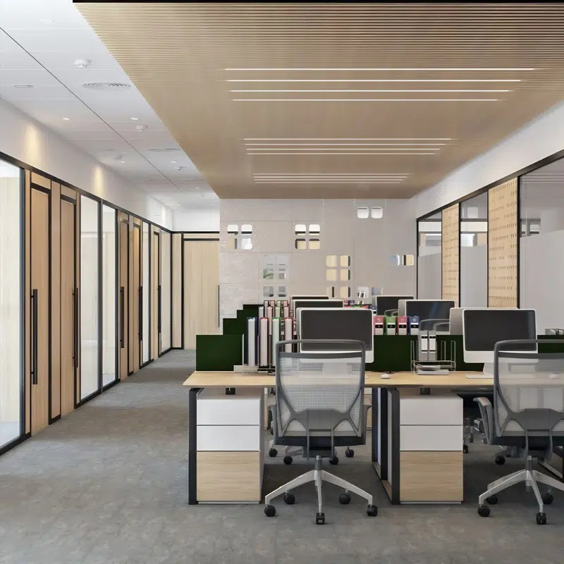 - Với những văn phòng nhỏ, việc sử dụng bàn cụm, tủ tích hợp hay vách ngăn nhẹ sẽ giúp không gian trở nên linh hoạt hơn.