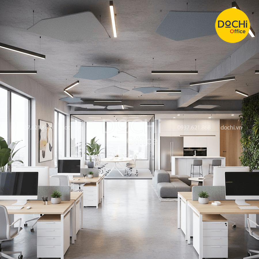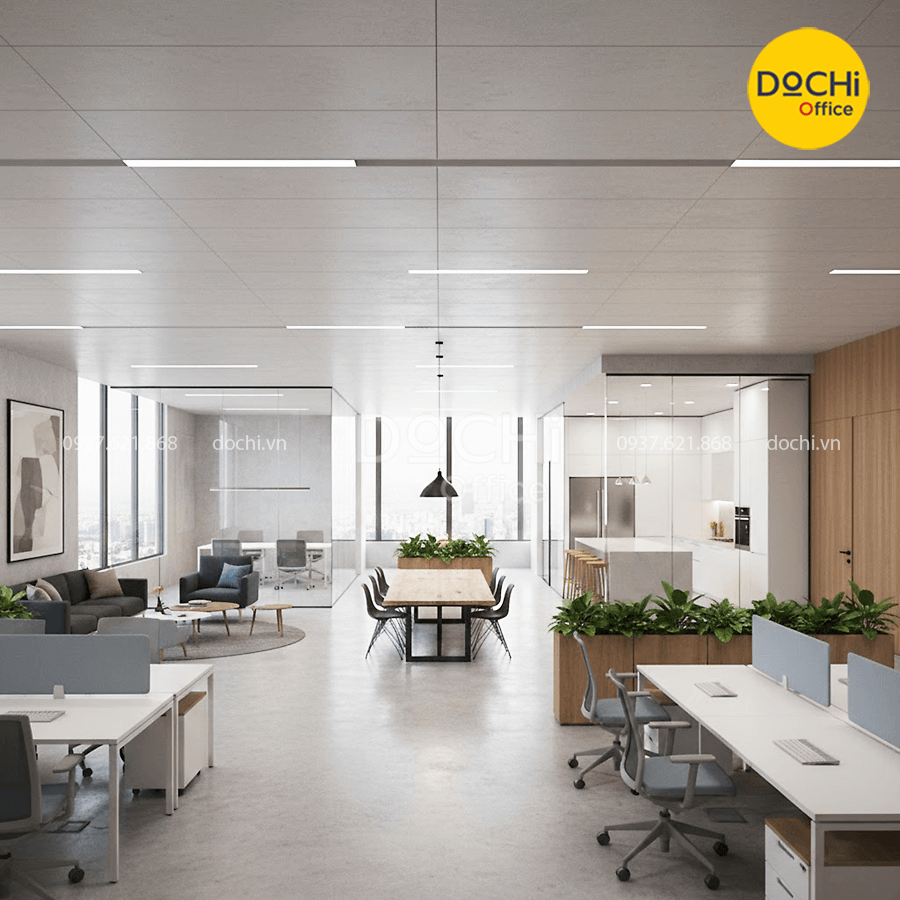 - Thiết kế nội thất văn phòng 300m2 của DOCHI OFFICE đảm bảo thẩm mỹ, tiện nghi và bền vững.
