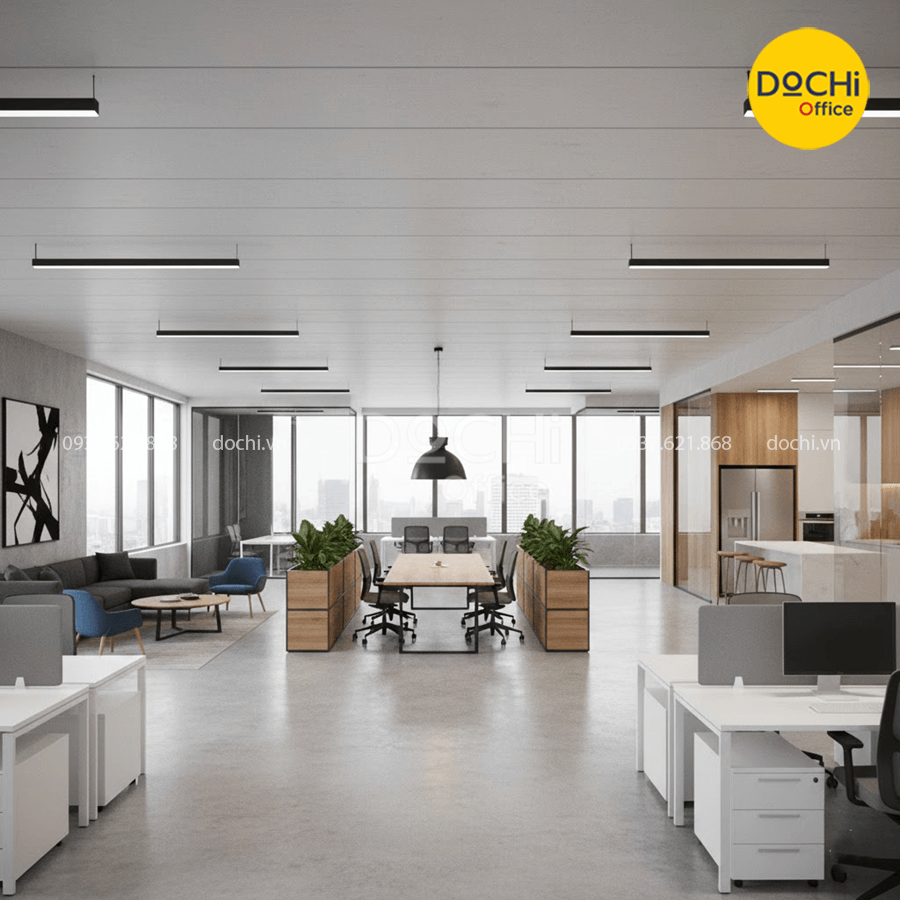- DOCHI OFFICE là đơn vị thiết kế và thi công văn phòng tại TP HCM hoạt động bài bản, từng thực hiện nhiều công trình văn phòng trên 300m2, hiểu rõ cách tối ưu không gian và đảm bảo công năng theo tiêu chuẩn thực tế.