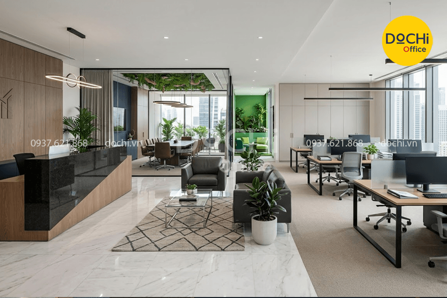 - Một văn phòng được đầu tư đúng hướng sẽ giúp doanh nghiệp xây dựng hình ảnh chuyên nghiệp, tăng trải nghiệm khách hàng và tạo điều kiện làm việc ổn định cho nhân sự.