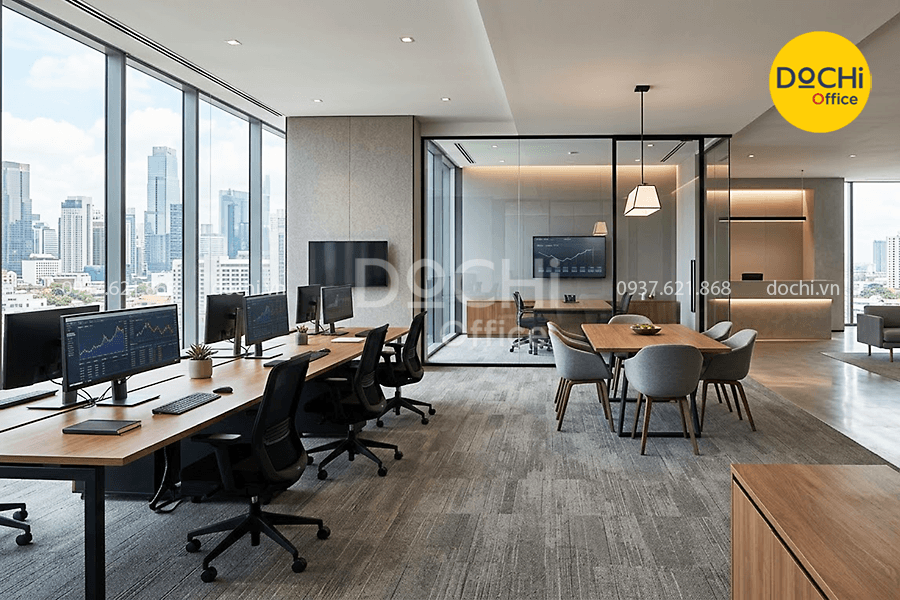 Nếu doanh nghiệp đang tìm kiếm hướng đi bài bản cho dự án của mình, DOCHI OFFICE là lựa chọn đáng cân nhắc để hiện thực hóa một không gian chuẩn chuyên nghiệp, thẩm mỹ bền vững và phù hợp đúng với đặc thù ngành tài chính.