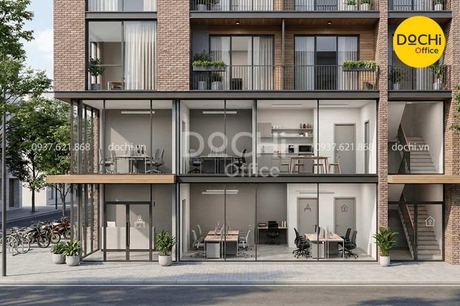 • Cách phân tầng này giúp doanh nghiệp hoạt động như văn phòng thật, đồng thời gia đình vẫn có không gian yên tĩnh.