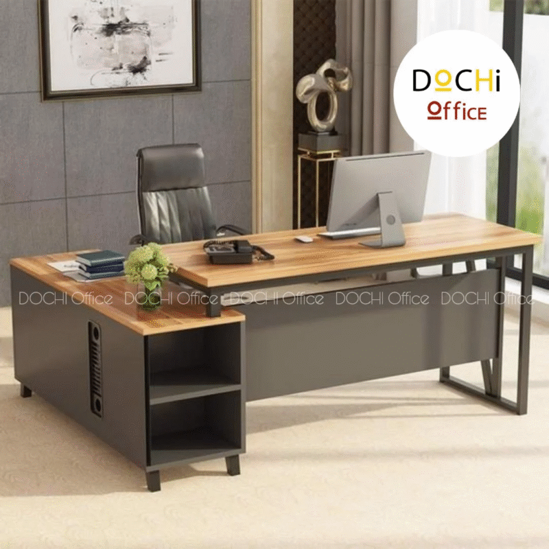 Bàn Giám Đốc Chữ L DT035 nhà DOCHI OFFICE với phong cách hiện đại. Chân Thép sơn tĩnh điện đặt vuông góc với mặt bàn tạo sự vững chắc. Bàn thiết kế có tủ đựng hồ sơ, vật dụng cá nhân tiện dụng lại đẹp mắt. Nếu ai quan tâm đến sự sang trọng, lịch lãm và hãnh diện với khách hàng/ đối tác ghé thăm mang lại hiệu quả, thuận lợi trong công việc sở hữu chiếc bàn này là lựa chọn nên làm.
