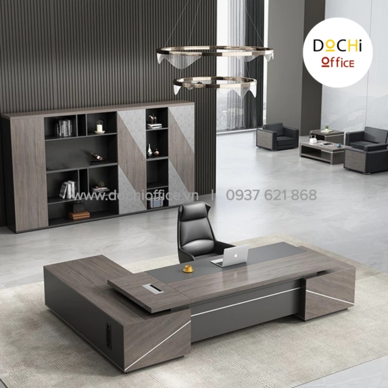 Bàn Giám Đốc DT040 cao cấp hình chữ L nhà DOCHI OFFICE với phong cách sang trọng chân bàn đặt vuông góc với mặt bàn tạo sự vững chãi, xung quanh được lắp kín ván tạo được sự sang trọng, lịch thiệp. Nhìn vào trực diện chiếc bàn toát lên vẻ đẹp vô cùng uy lực. Nếu ai quan tâm đến sự sang trọng, lịch lãm và hãnh diện với khách hàng/ đối tác ghé thăm mang lại hiệu quả, thuận lợi trong công việc sở hữu chiếc bàn này là lựa chọn nên làm.