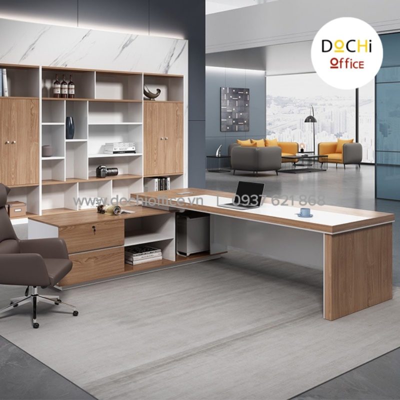 Bàn Giám Đốc Hiện Đại DT006 hình chữ L nhà DOCHI OFFICE là mẫu thiết kế mang phong cách đơn giản mà hiện đại. Sở hữu kiểu dáng sang trọng, tôn nghiêm, là sự lựa chọn tuyệt vời để đặt vào danh sách thiết yếu làm đẹp cho văn phòng bạn. Đây là sản phẩm bàn giám đốc hiện đại với thiết kế đơn giản hợp phong cách với những lãnh đạo có gu thẩm mỹ cao và biết yêu chiều cái đẹp thì chiếc bạn này là sự lựa chọn hoàn hảo dành cho bạn.