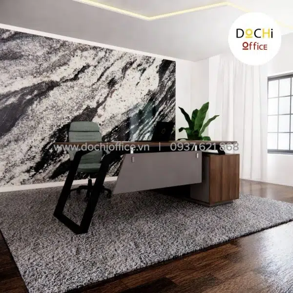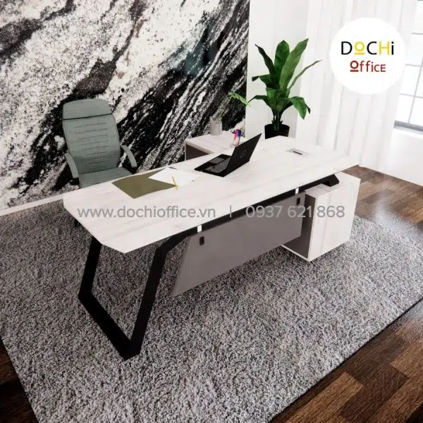 - Kiểu dáng hiện đại: bàn làm việc nhỏ gọn kèm tủ hồ sơ bên cạnh tạo thành góc L bắt mắt, tạo sự tiện lợi và đáp ứng đủ nhu cầu của bàn làm việc giám đốc giúp việc kiểm soát quản lý giấy tờ, hồ sơ, sổ sách dễ dàng hơn. Đây là mẫu bàn làm việc lãnh đạo tạo cảm giác thoải mái, đẹp mắt cho nơi làm việc của bạn.