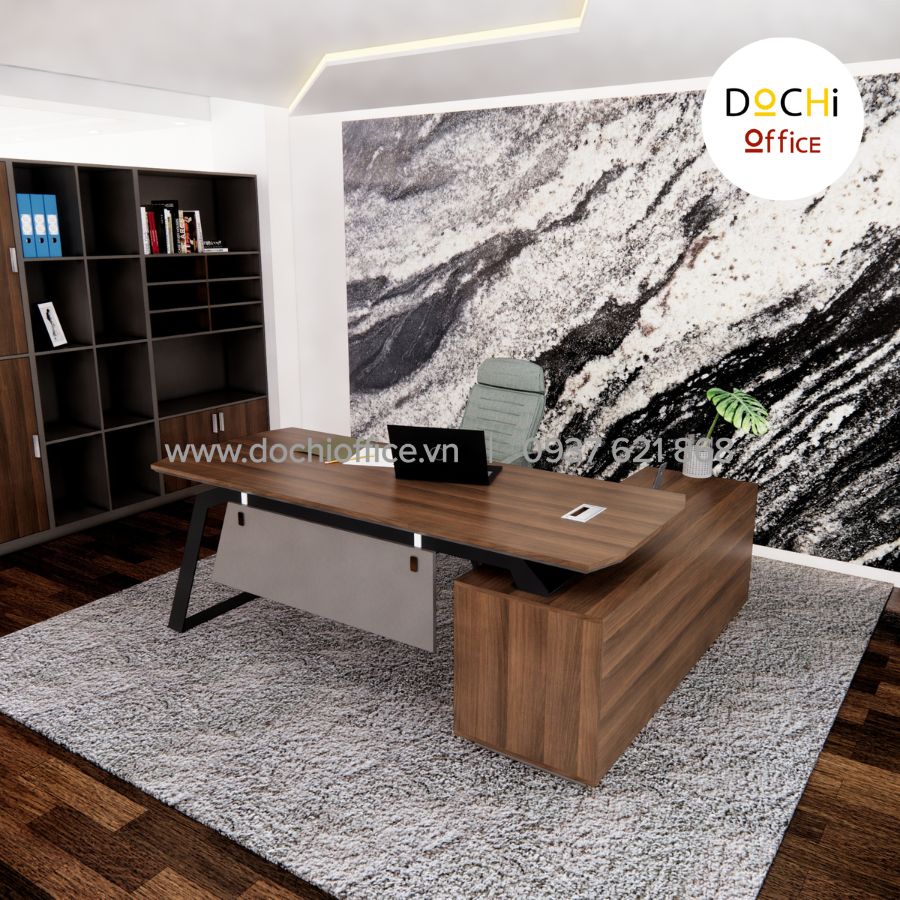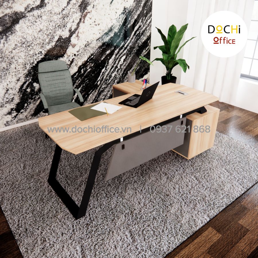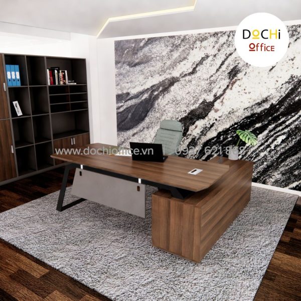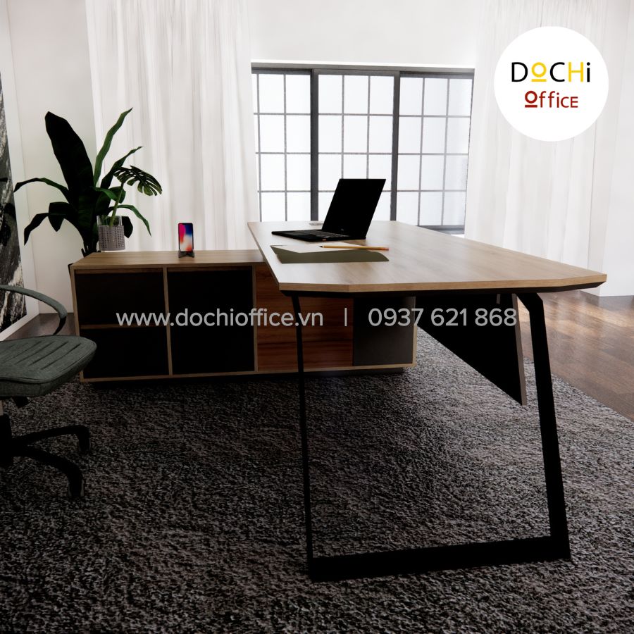 - Kiểu dáng hiện đại: bàn làm việc nhỏ gọn kèm tủ hồ sơ bên cạnh tạo thành góc L bắt mắt, tạo sự tiện lợi và đáp ứng đủ nhu cầu của bàn làm việc giám đốc giúp việc kiểm soát quản lý giấy tờ, hồ sơ, sổ sách dễ dàng hơn. Đây là mẫu bàn làm việc lãnh đạo tạo cảm giác thoải mái, đẹp mắt cho nơi làm việc của bạn.
