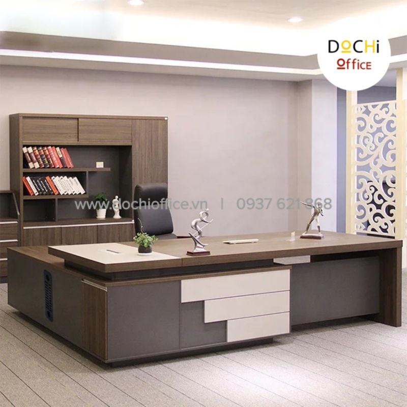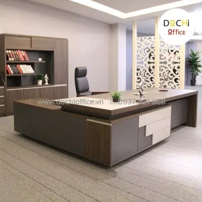 Bàn Giám Đốc Sang Trọng DT027 cao cấp hình chữ L nhà DOCHI OFFICE với phong cách sang trọng chân bàn đặt vuông góc với mặt bàn tạo sự vững chãi, xung quanh được lắp kín ván tạo được sự sang trọng, lịch thiệp. Nhìn vào trực diện chiếc bàn toát lên vẻ đẹp vô cùng uy nghiêm. Nếu ai quan tâm đến sự sang trọng, lịch lãm và hãnh diện với khách hàng/ đối tác ghé thăm mang lại hiệu quả, thuận lợi trong công việc sở hữu chiếc bàn này là lựa chọn sáng suốt.