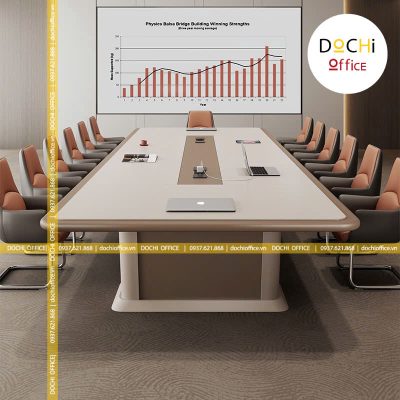 Bàn Họp Lớn Thiết Kế Cao Cấp MT061 nhà DOCHI OFFICE là mẫu thiết kế mặt bàn chữ nhật vát 2 đầu kết hợp với chân gỗ thiết kế mới với các cách điệu độc đáo tạo sự chắc chắn hiện đại. Đây chính là sản phẩm bàn làm việc đẹp mắt đi đôi với chất lượng mà các văn phòng nên lựa chọn.