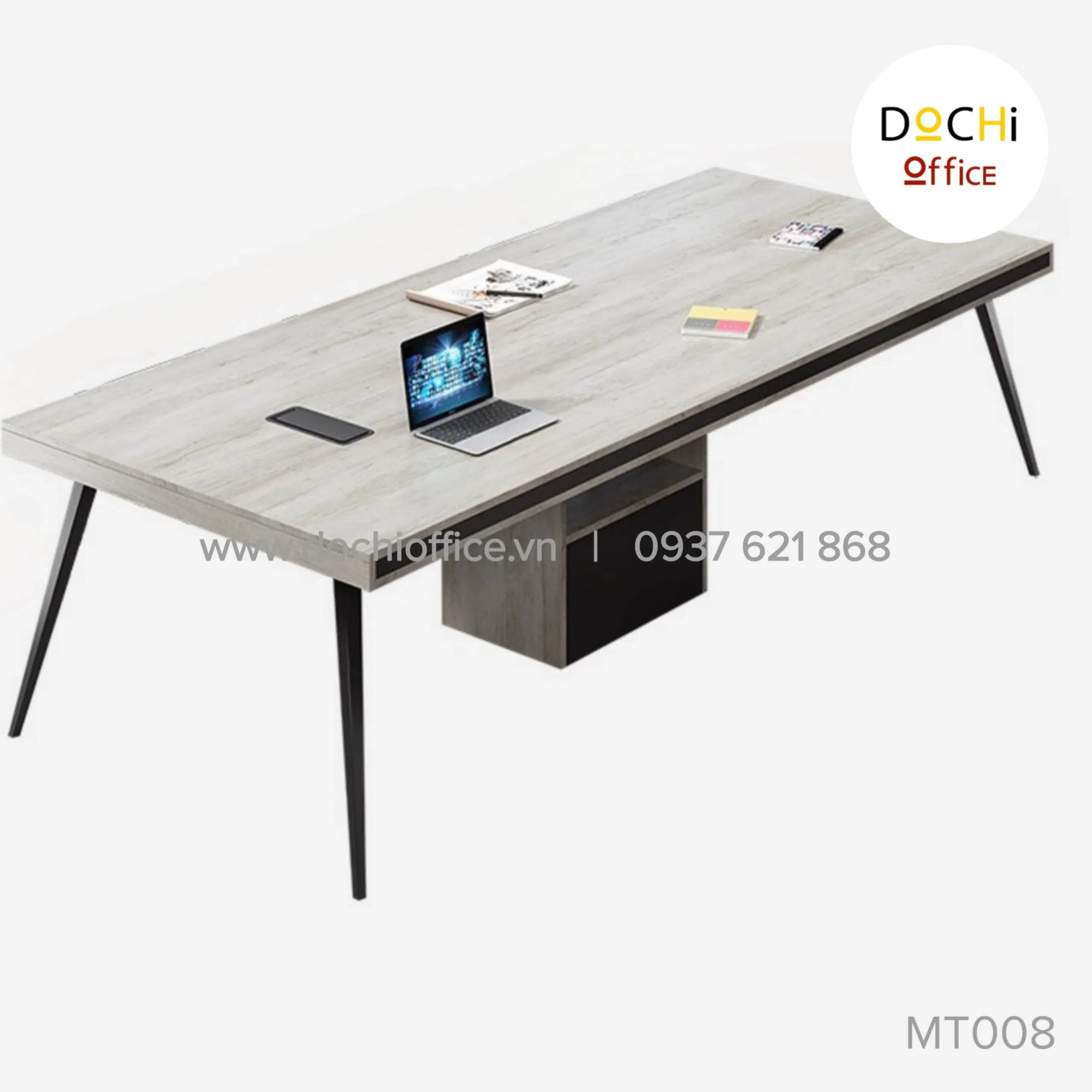 - Chân cone sắt: MT008 là mẫu bàn dành cho cuộc họp thiết kế với chân sắt kết hợp với tủ bàn ở dưới giữa bàn tạo được sự tỉ mỉ, chắc chắn.