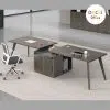 - Kiểu dáng hiện đại: Với sự tinh tế sử dụng chân nghiêng nhẹ so với mặt bàn tạo được kết hợp hài hòa và đẹp mắt cho không gian văn phòng. Đây là mẫu bàn làm việc nhóm tiết kiệm được không gian và tạo được cảm giác thoải mái cho nhân viên khi làm việc.