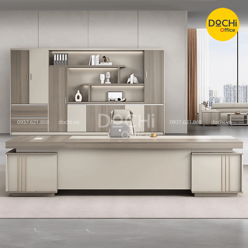 - Hộp tủ dưới tiện dụng, đa năng: vừa là tủ để đựng đồ vừa tạo điểm nhấn thu hút cho bàn giám đốc