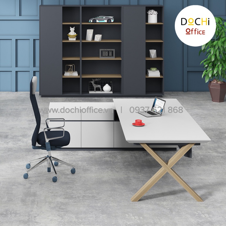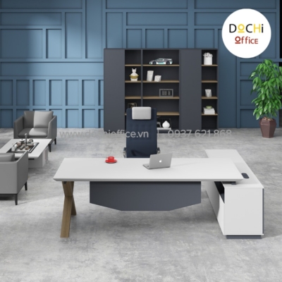 Bàn Làm Việc Giám Đốc DT060 hiện đại với thiết kế chân X vừa đơn giản vừa sang trọng. Đây là mẫu thiết kế chữ L với hộc tủ hiện đại vừa tiện dụng cho việc để đồ. Với mẫu thiết kế bàn lãnh đạo đơn giản, kiểu dáng hiện đại. Đây là mẫu thiết kế mới phù hợp với mọi không gian văn phòng làm việc ấn tượng.
