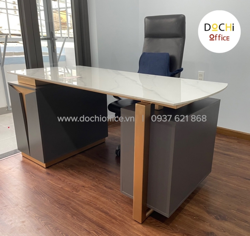 Bàn Làm Việc Giám Đốc Hiện Đại DT048 nhà DOCHI OFFICE với thiết kế mới lạ, bắt mắt, khoảng trống trực diện bàn nhiều tạo được độ thông thoáng mát mẻ. Mặt bàn sử dụng mặt đá tạo cảm giác sang trọng và đẹp mắt, cảm giác mát lạnh khi ngồi vào làm việc. Nếu bạn đang quan tâm đến một chiếc bàn làm việc cho giám đốc sang và hãnh diện khi có khách hàng/ đối tác ghé thăm thì lựa chọn chiếc bàn này là lựa chọn cần thiết.