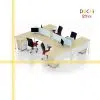 - Kiểu dáng hiện đại: Với sự tinh tế sử dụng chân gỗ MDF tạo điểm nổi bật cho chiếc bàn bởi sự kết hợp hài hòa và đẹp mắt cho không gian văn phòng. Đây là mẫu bàn làm việc nhóm tiết kiệm được không gian cho văn phòng.
