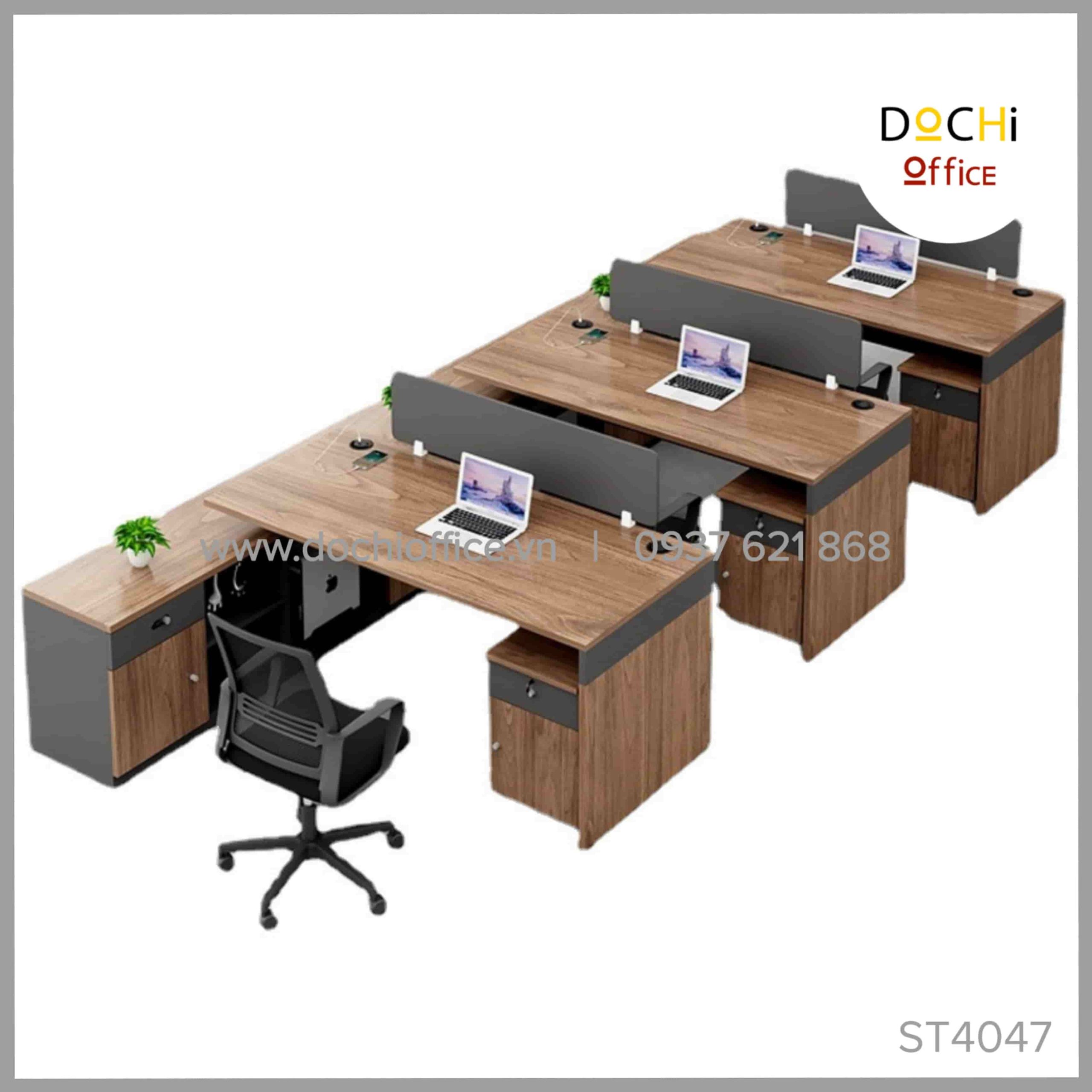 Bàn Làm Việc Nhóm ST4047 – Cụm 3 nhà DOCHI OFFICE là mẫu thiết kế mới theo phong cách hiện đại, mang đến sự thoải mái và hiệu quả khi làm việc ở văn phòng, tiết kiệm diện tích không gian. Đây là sản phẩm bàn làm việc chất lượng, giá cả phù hợp mang tính thẩm mỹ mà các văn phòng nên lựa chọn.