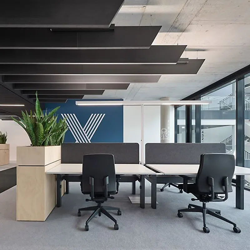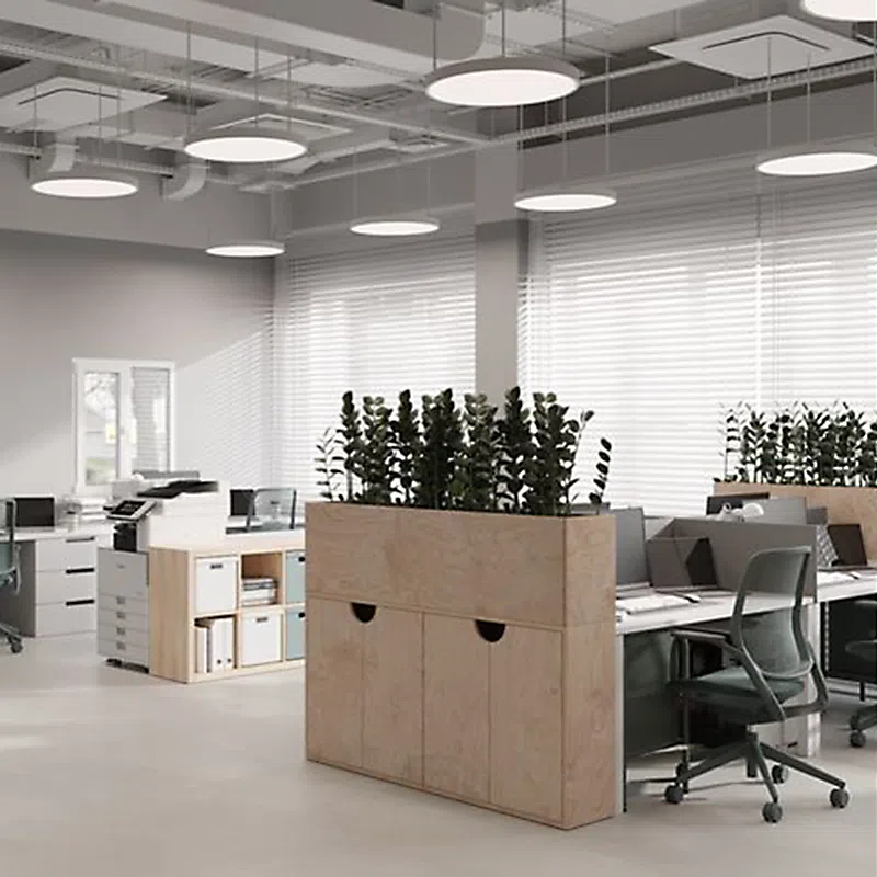 Để khắc phục điều đó, bạn nên chia nhỏ khu vực làm việc bằng các vách ngăn thấp, cây xanh hoặc tủ lưu trữ, vừa giữ sự kết nối, vừa đảm bảo không gian riêng cho từng người. Cách bố trí này giúp nhân viên không bị phân tán bởi chuyển động hay âm thanh xung quanh, trong khi vẫn dễ dàng giao tiếp khi cần.