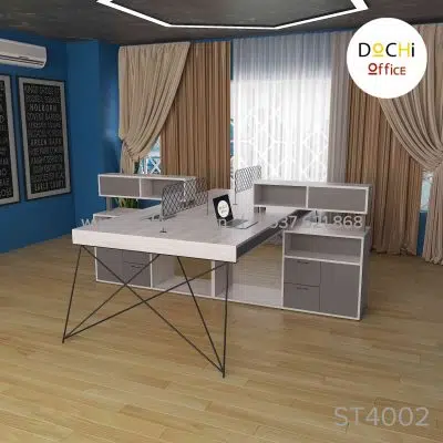 Cụm Bàn Làm Việc Nhân Viên 4 Người ST4002 nhà DOCHI OFFICE với thiết kế theo phong cách hiện đại, giúp tối ưu chi phí, tiết kiệm không gian tạo không gian mở vừa giúp các thành viên liên kết với nhau nhưng vẫn đủ không gian tập trung làm việc. Là 1 sự lựa chọn phù hợp với các văn phòng có không gian vừa và nhỏ và đông nhân viên.
