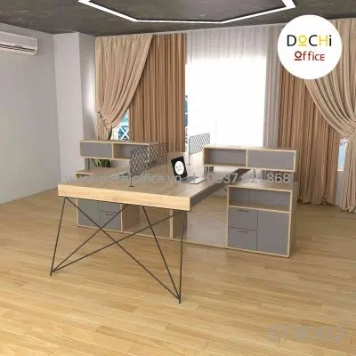 - Kiểu dáng hiện đại: với sự kết hợp giữa mặt gỗ MDF phủ melamine và chân sắt bắt chéo vô cùng sang trọng tạo đẳng cấp cho không gian văn phòng. Đây là mẫu bàn làm việc nhóm tiết kiệm tối đa không gian cho văn phòng.