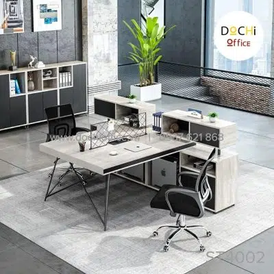 - Chân sắt chéo ấn tượng: ST4002 là mẫu thiết kế bàn làm việc chân sắt được sơn theo dây chuyền sơn tĩnh điện bền đẹp.