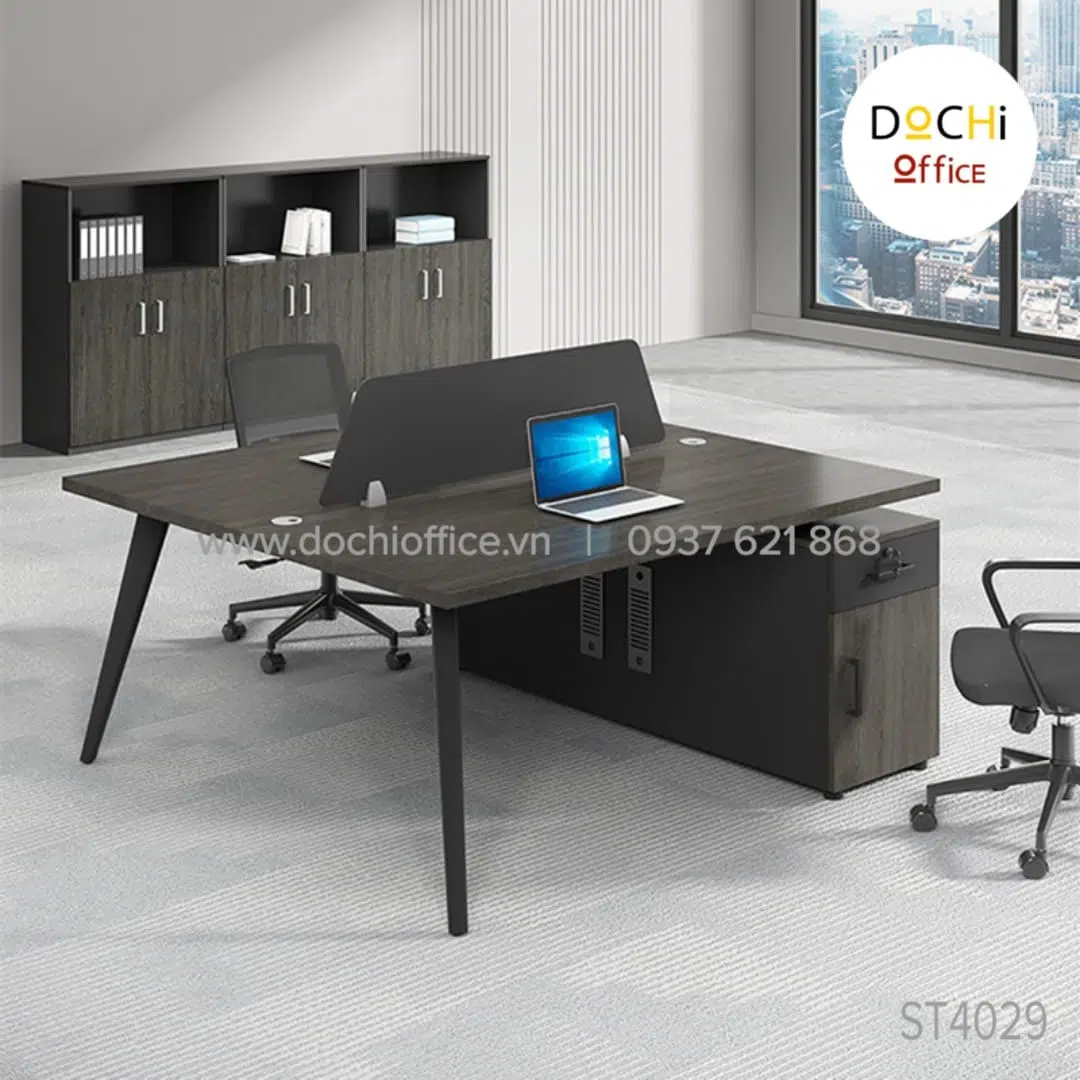 - Chân xéo phong cách: ST4029 là mẫu thiết kế bàn làm việc chân tủ và sắt kết hợp, được sơn theo dây chuyền sơn tĩnh điện bền đẹp.