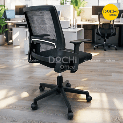 Ghế xoay nhân viên DOCHI OFFICE sở hữu thiết kế lưới thoáng khí và nệm xốp êm giúp mang lại trải nghiệm ngồi dễ chịu trong suốt ngày dài làm việc.