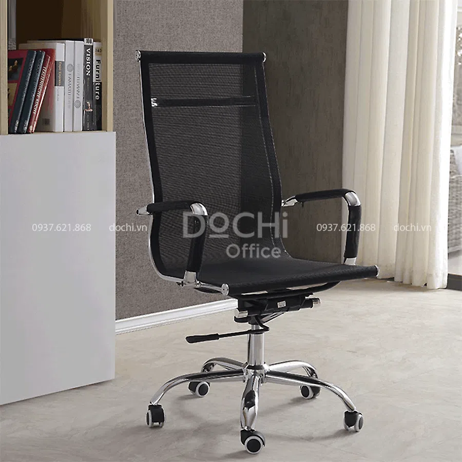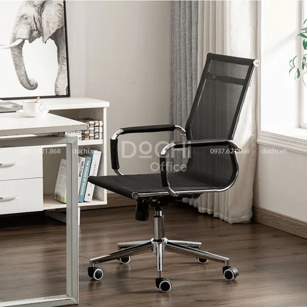 Ghế Xoay Nhân Viên Lưới Lưng Cao GX009 lưới lưng cao chân mạ Crom cao cấp. Hệ chân xoay 360 độ thuận tiện và linh hoạt hơn khi ngồi.