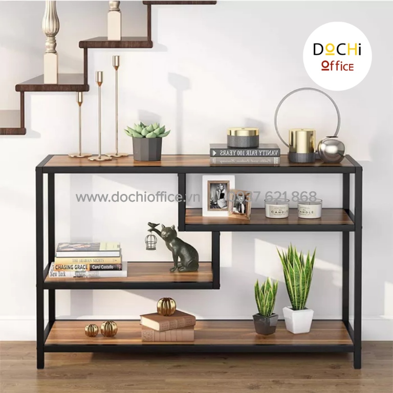 - Kiểu dáng hiện đại: Với sự kết hợp gỗ và thép sơn tĩnh điện có nhiều ngăn với kích thước khác nhau để đồ dùng, kệ sách, bình hoa, cây cảnh….