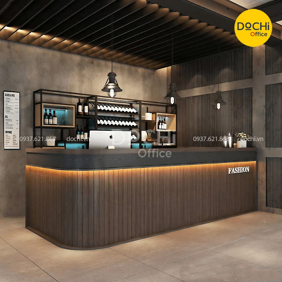 Quầy Lễ Tân Chữ L Sang Trọng QLT041 nhà DOCHI OFFICE là mẫu thiết kế vô cùng sang trọng. Quầy thiết kế với các bề mặt là các thanh gỗ sọc vô cùng sang trọng. Quầy còn tạo được điểm nhấn nhờ hệ Led bắt nắt. Quầy lễ tân là đại diện cho công ty, nơi mà khách hàng/ đối tác nhìn cảm nhận đầu tiên khi đến công ty. Do đó cần đầu tư quầy tiếp tân từ chất lượng cho đến mẫu mã thật thu hút.