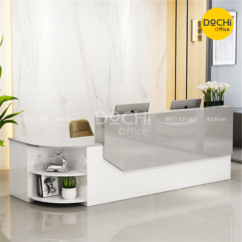 Quầy Tiếp Tân Hiện Đại Bo Cong QLT055 nhà DOCHI OFFICE là mẫu thiết kế hiện đại. Chiếc quầy đóng vai trò quan trọng khi khách hàng/ đối tác nhìn vào trực diện bộ mặt của công ty mà đánh giá cửa hàng, công ty mình. Chọn quầy lễ tân hợp không gian, hợp thời sẽ để lại ấn tượng sâu sắc trong lòng họ. Đây là quầy lễ tân làm việc đẹp, chất lượng, thẩm mỹ mà các doanh nghiệp/ công ty nên lựa chọn.