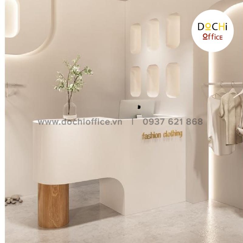 Quầy Tiếp Tân Hiện Đại Bo Cong QLT062 nhà DOCHI OFFICE là mẫu thiết kế hiện đại. Chiếc quầy đóng vai trò quan trọng khi khách hàng/ đối tác nhìn vào trực diện bộ mặt của công ty mà đánh giá cửa hàng, công ty mình. Quầy có điểm nhấn nhờ phần chân tròn ấn tượng.