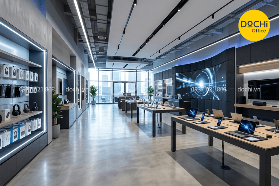 - Đây là nơi khách hàng thường muốn trải nghiệm trực tiếp, thử tính năng và so sánh sản phẩm, vì vậy không gian cần được tổ chức theo hướng mở, rõ ràng và thuận tiện thao tác.