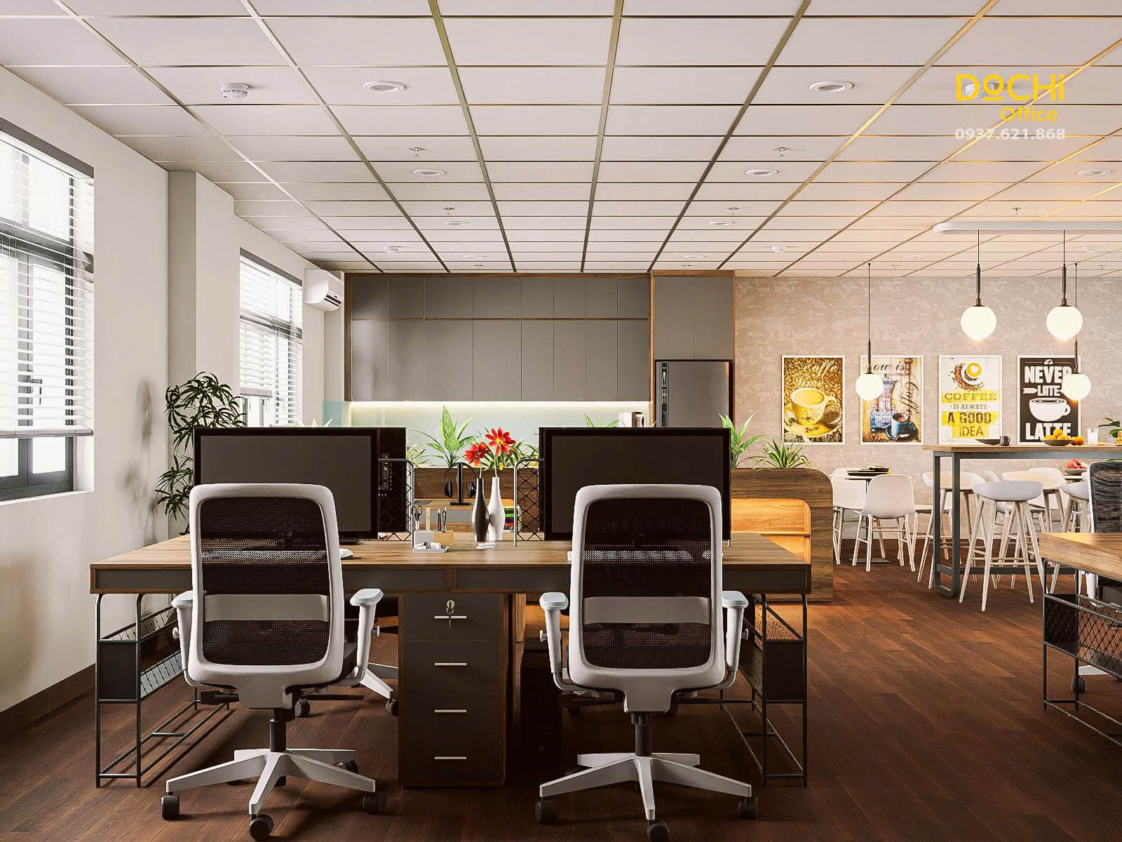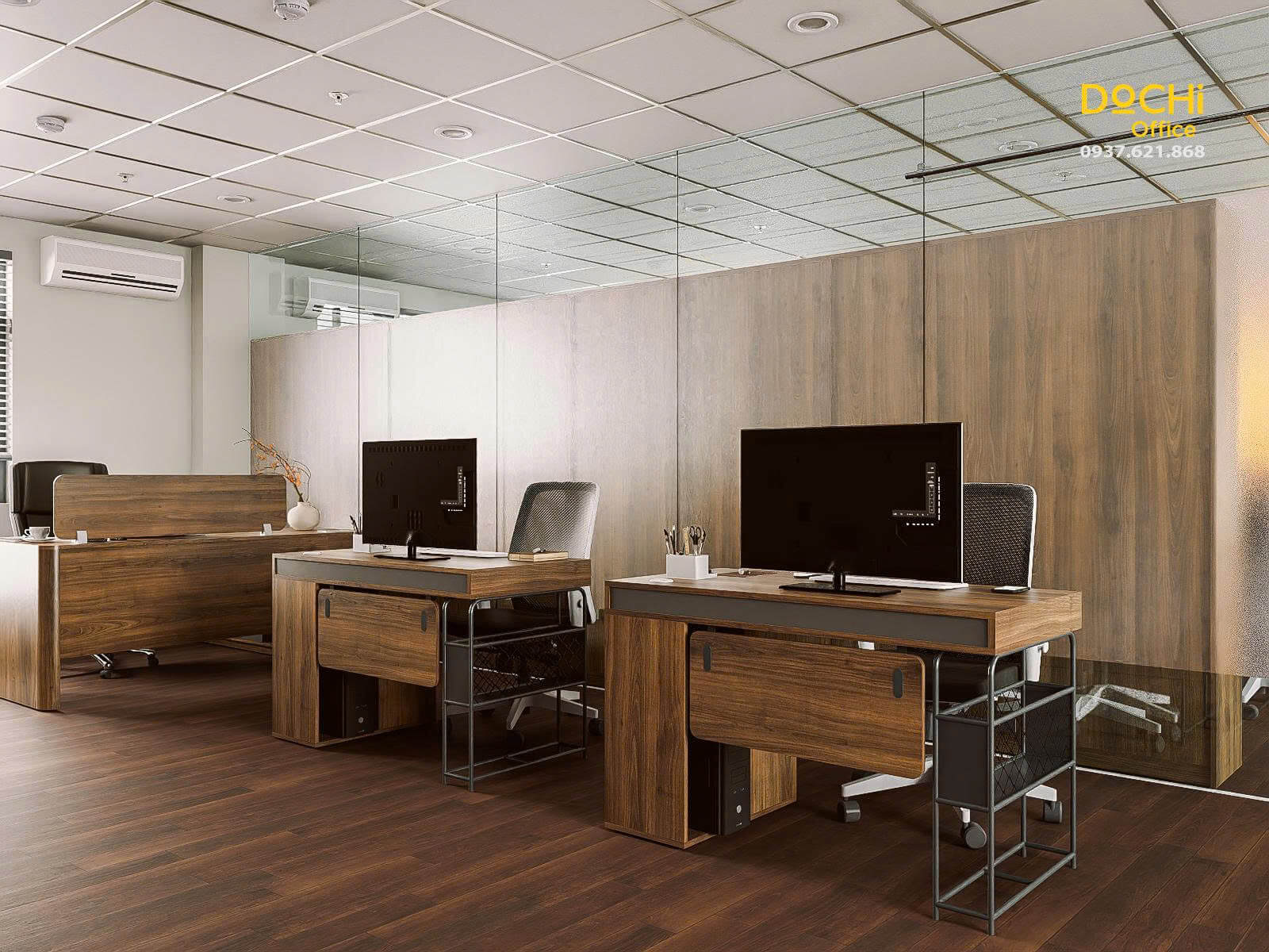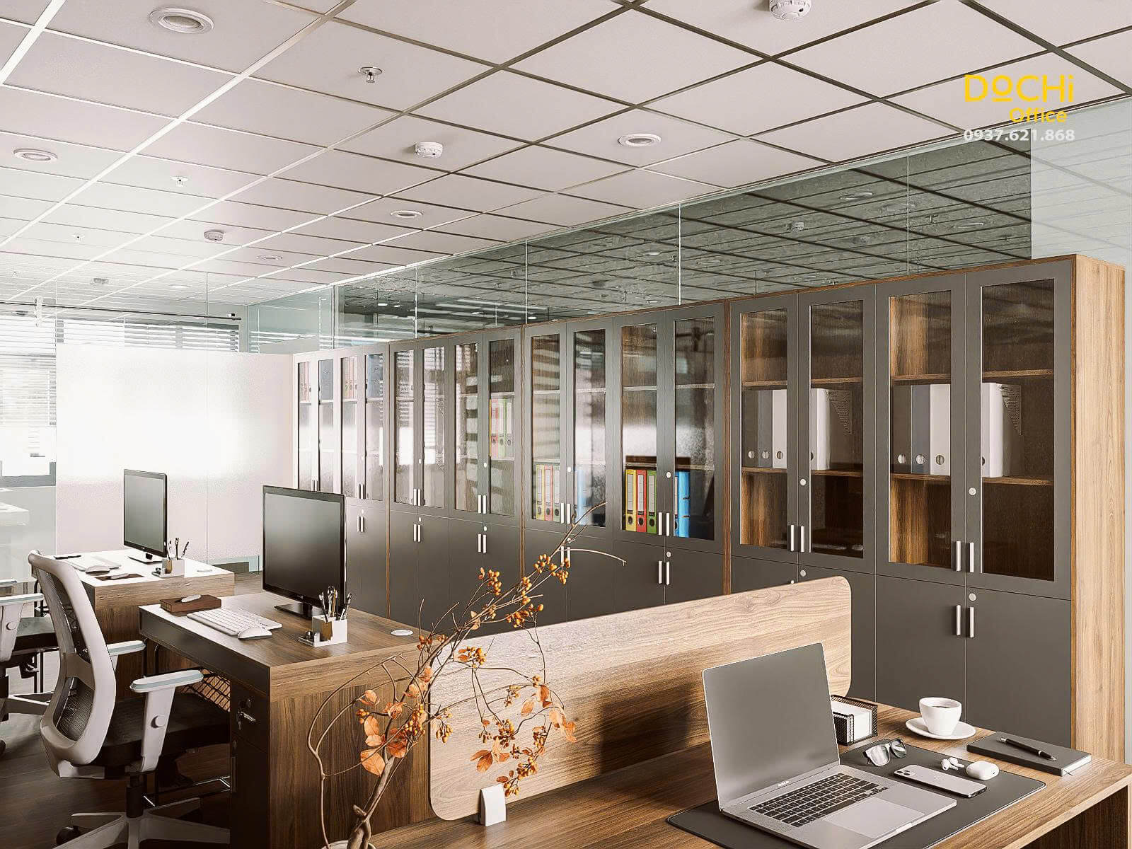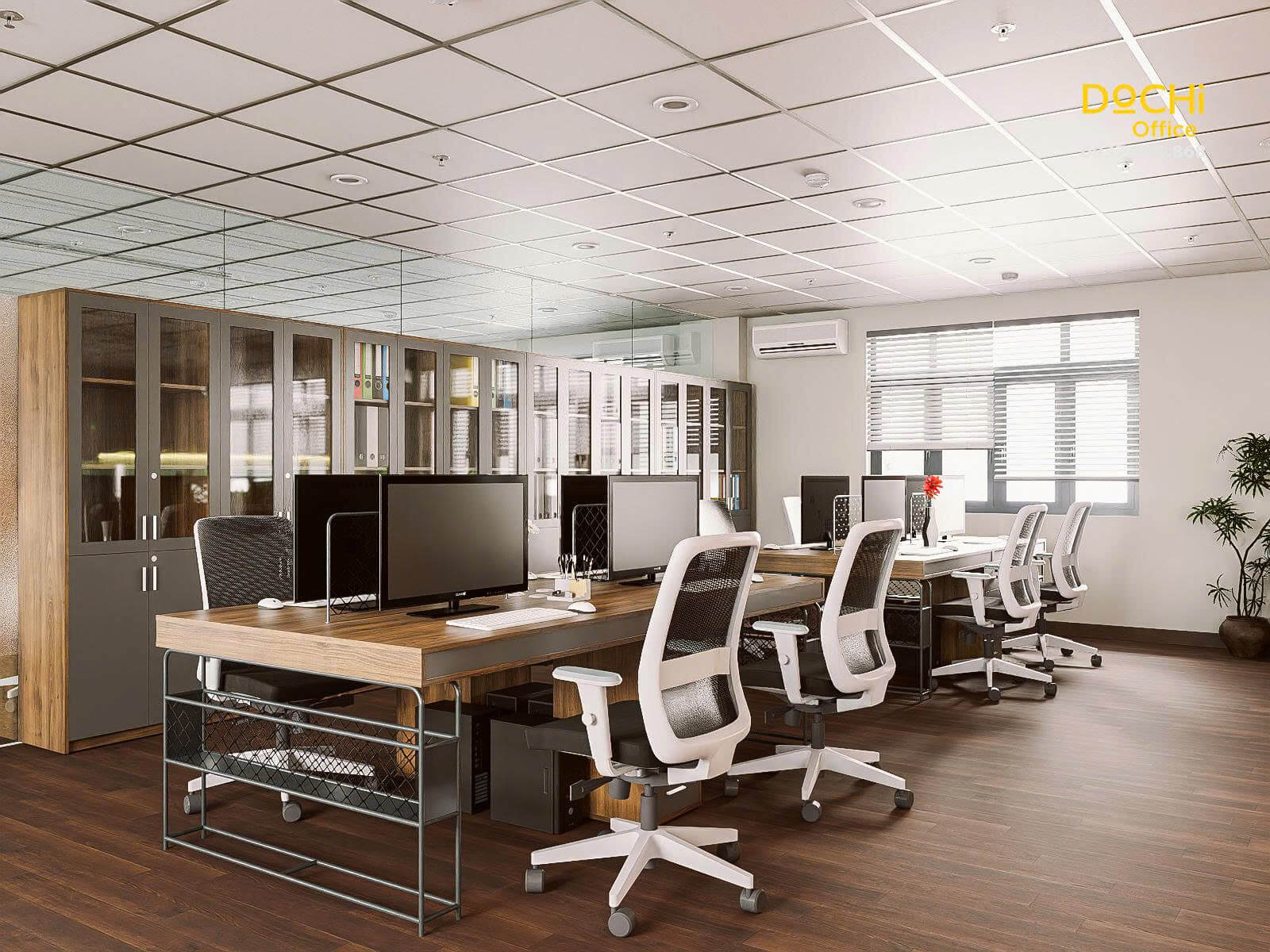 - Đội ngũ chuyên nghiệp: DOCHI OFFICE mang đến những thiết kế đồng bộ từ quầy lễ tân, khu làm việc, phòng họp đến phòng giám đốc.