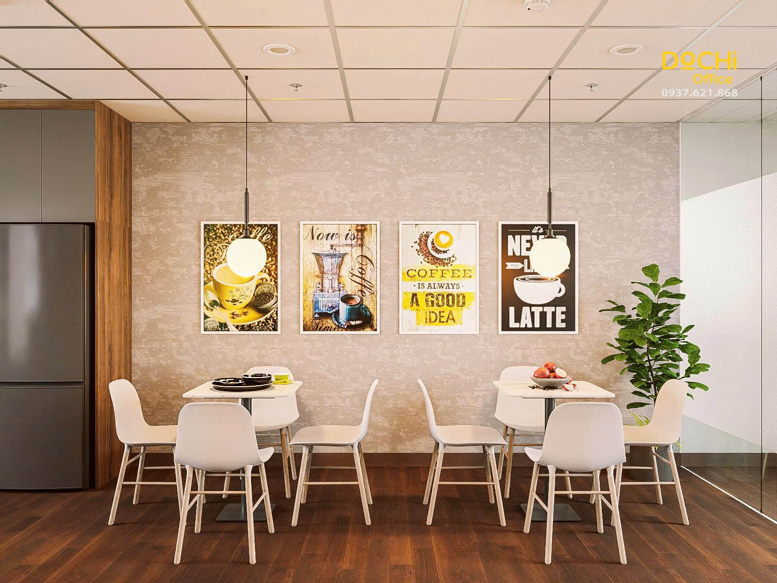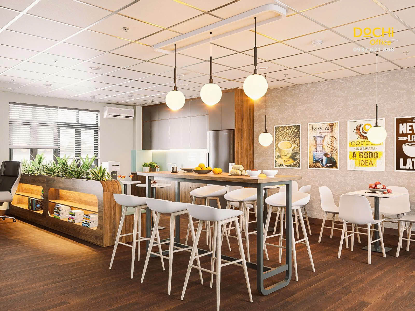 - Không gian pantry được thiết kế như một điểm nghỉ giữa nhịp làm việc.