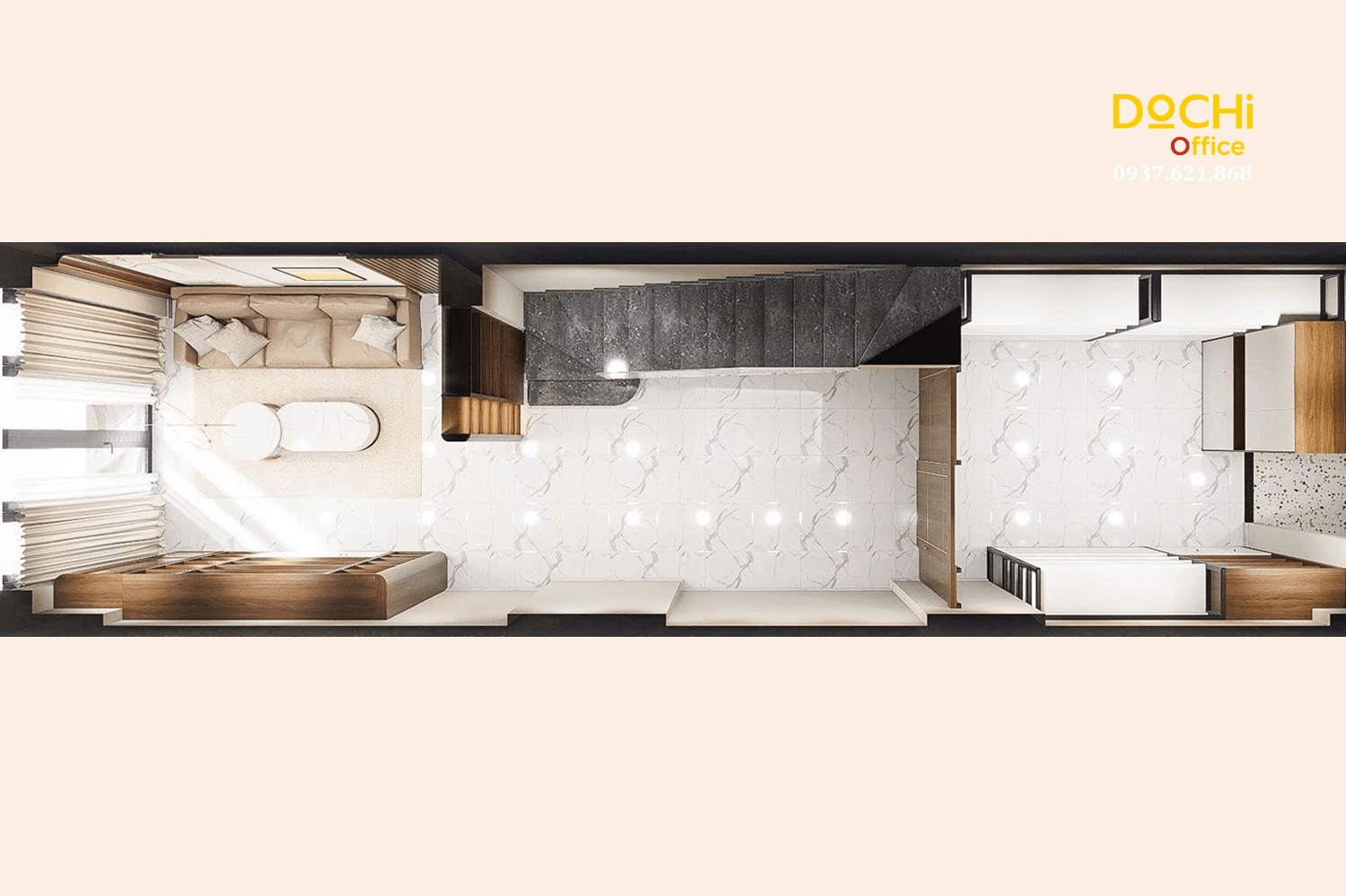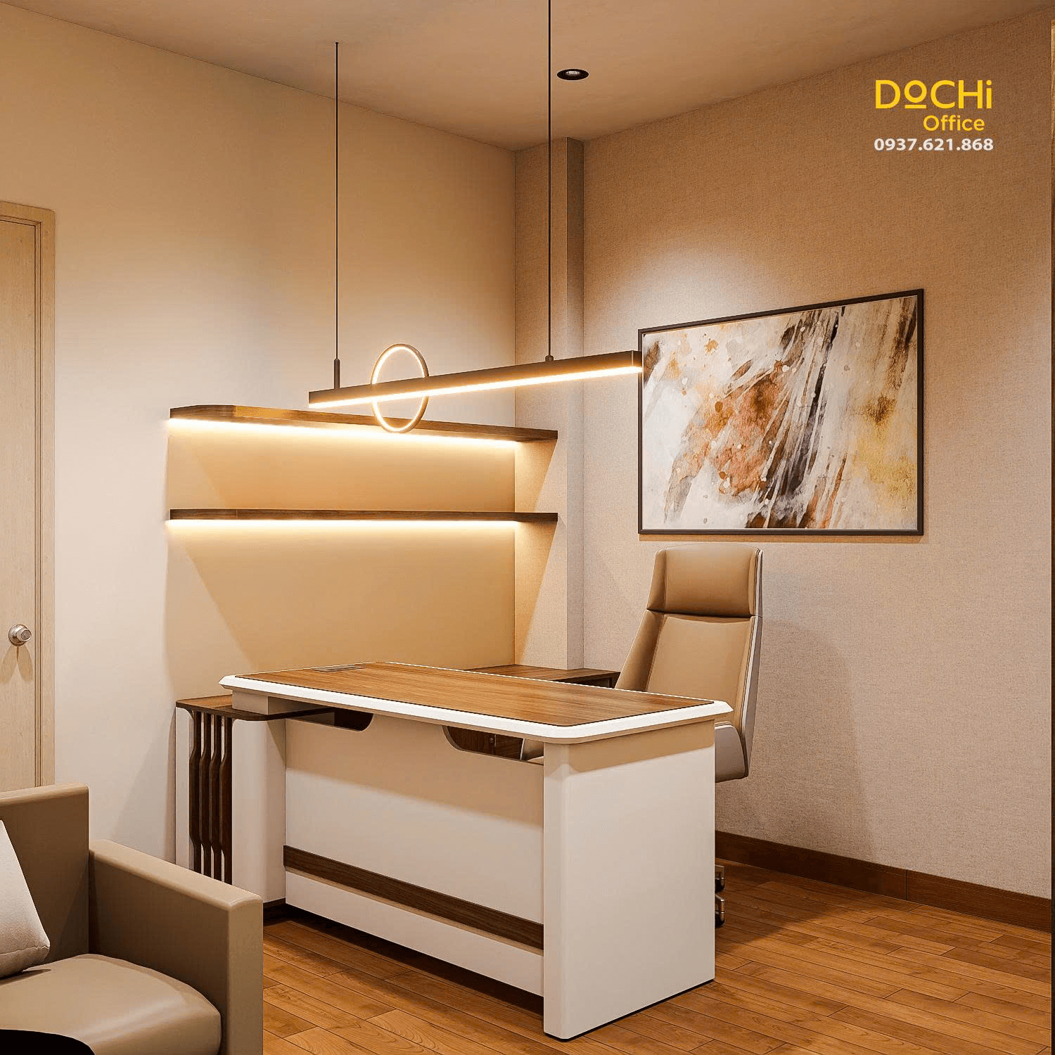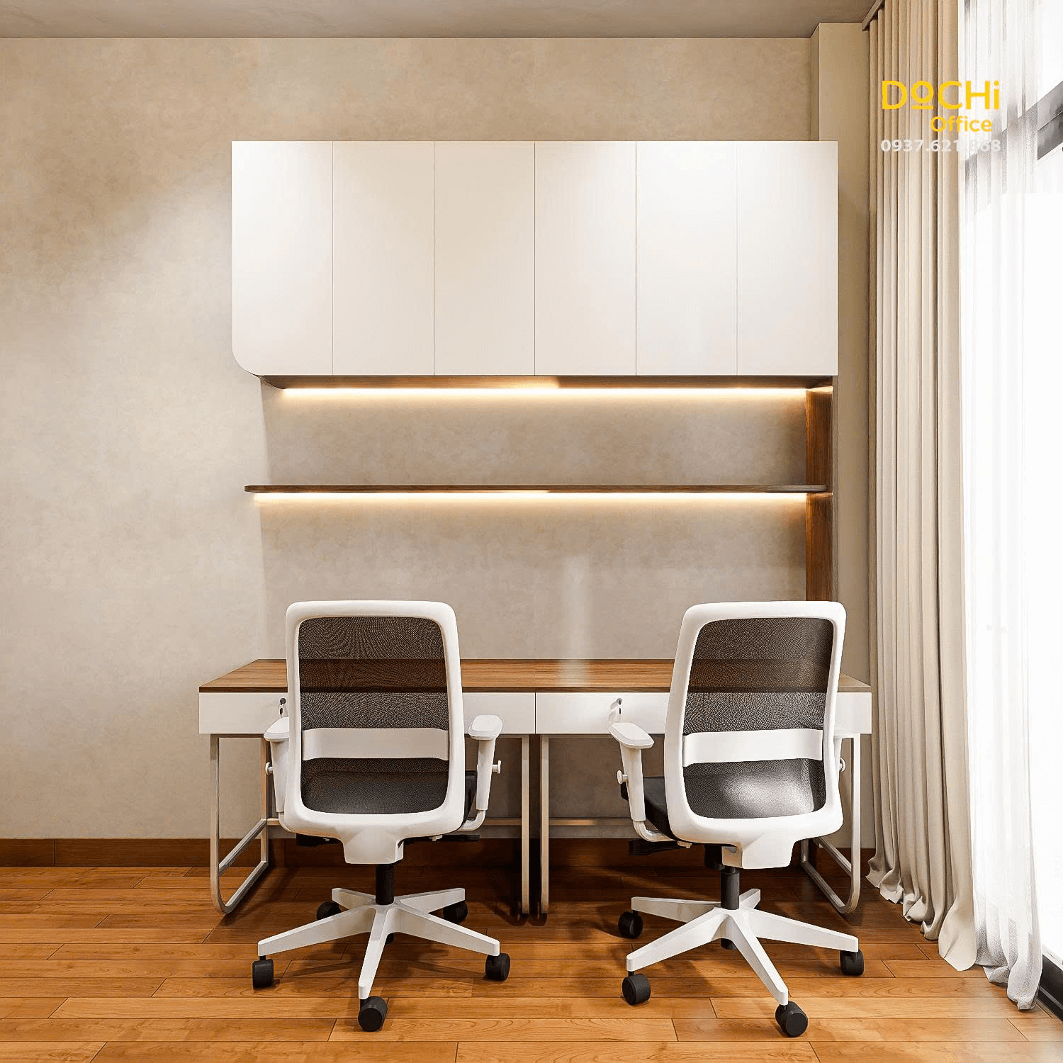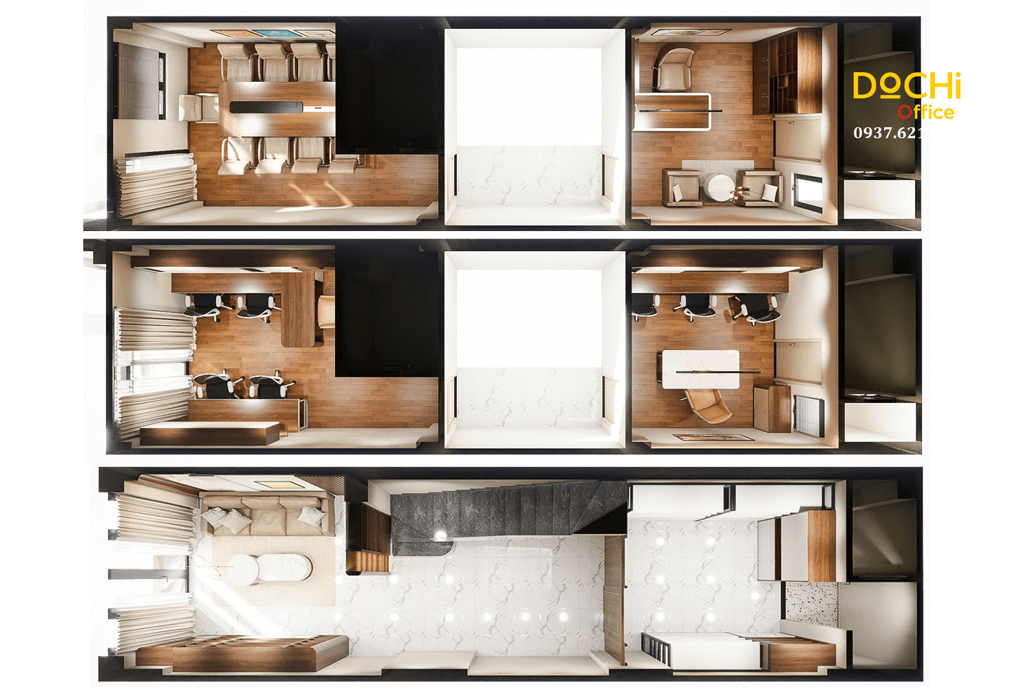 - Đội ngũ chuyên nghiệp: DOCHI OFFICE mang đến những thiết kế đồng bộ từ quầy lễ tân, khu làm việc, phòng họp đến phòng giám đốc.