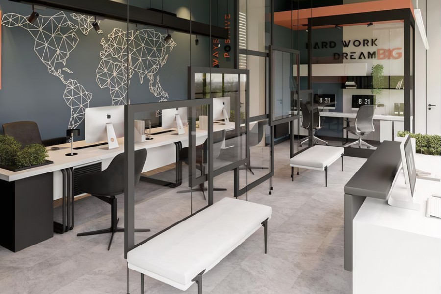 - Không gian văn phòng nên được phân tách rõ ràng giữa khu vực hành chính, khu điều hành và khu tiếp khách, sử dụng tông màu trung tính kết hợp nội thất có độ bền cao, dễ bảo trì và vệ sinh.