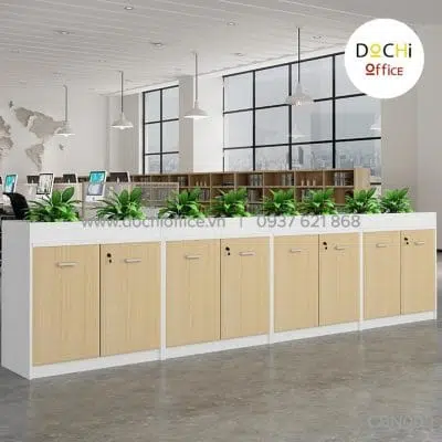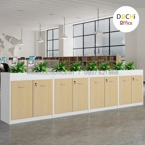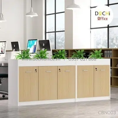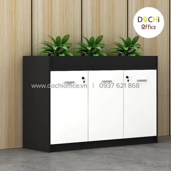 - Kiểu dáng bắt mắt: Mẫu thiết kế tủ tài liệu CBN003 vừa kết hợp ngăn tủ có cửa và ngăn tủ không cửa để nhân viên linh hoạt khi sắp xếp tài liệu, đồ dùng văn phòng cũng như các vật dụng trang trí. Bên trên bề mặt có hộp để trồng cây xanh giúp không khí trở nên trong lành hơn cho môi trường quá nhiều thiết bị điện tử.