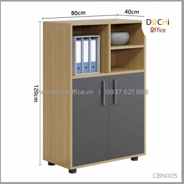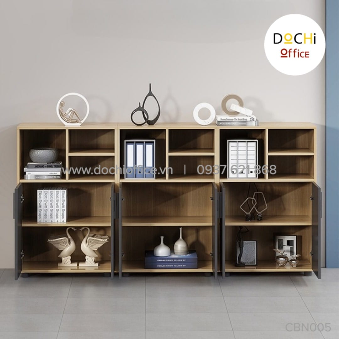 Tủ Tài Liệu Văn Phòng CBN005 là mẫu thiết kế tủ tài liệu thấp tiện dụng đa dạng kết hợp giữa ngăn có cánh và không cánh. CBN005 có kích thước của mỗi tủ: 40*80 cao 120cm. Ngoài ra DOCHI OFFICE còn nhận thiết kế, sản xuất theo kích thước và màu sắc yêu cầu.